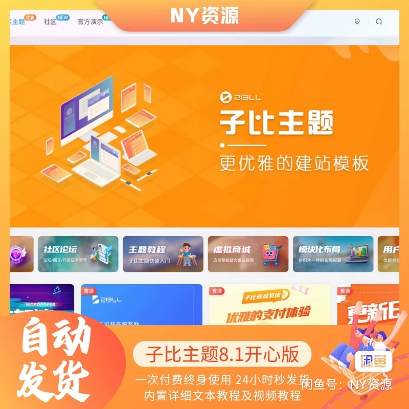 【拍一发四】子比主题8.1 免授权开心版 + 激活教程 + 美化插件 + 弹窗插件